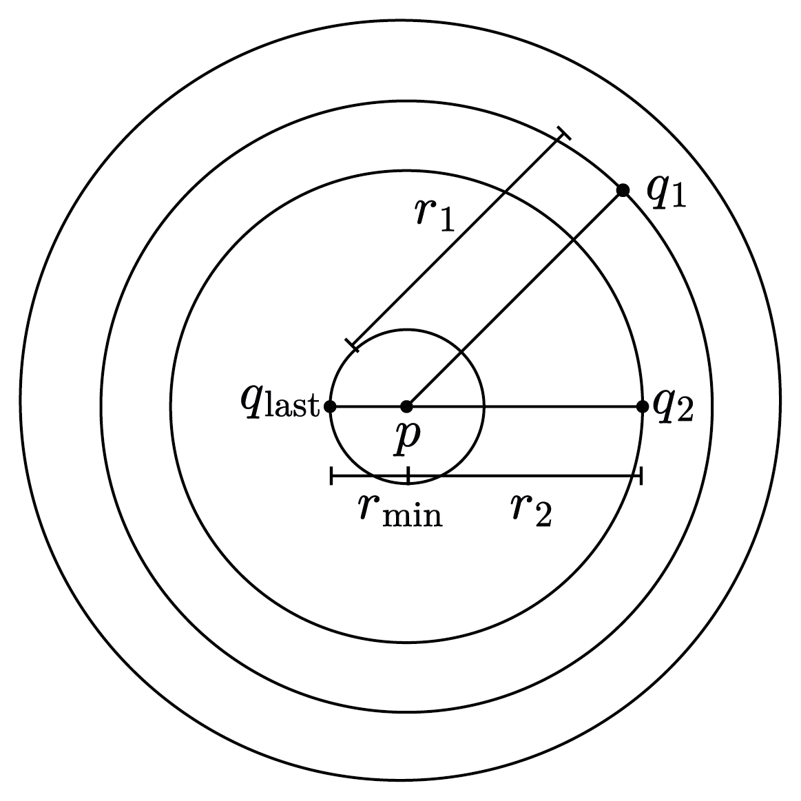 As figure (intuitively) shows there is no further elements between minimum distance and $p$.